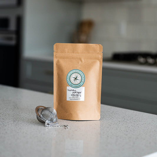 The perfect blend of honey+ginger+rooibos to solve your morning sickness woes! Caffeine-free.